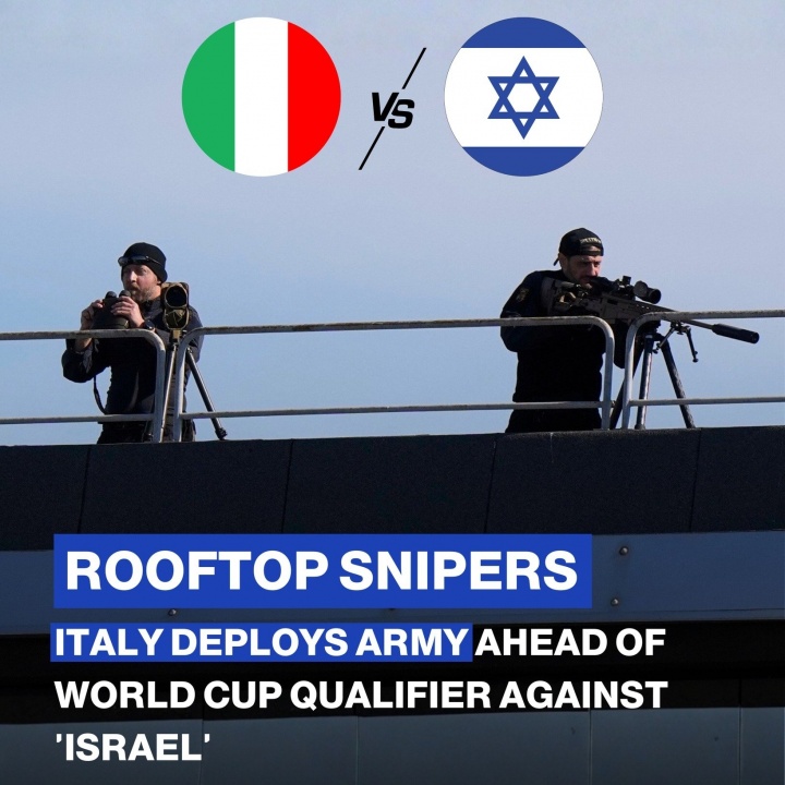 10月15日讯 凌晨欧洲区世预赛,意大利主场作战 3-0战胜以色列。据多家外媒报道,由于目前巴以的焦灼 局势,这场赛事 被列为了高风险赛事 ,在以色列下榻的酒店和赛事 现场,都有狙击手驻守。