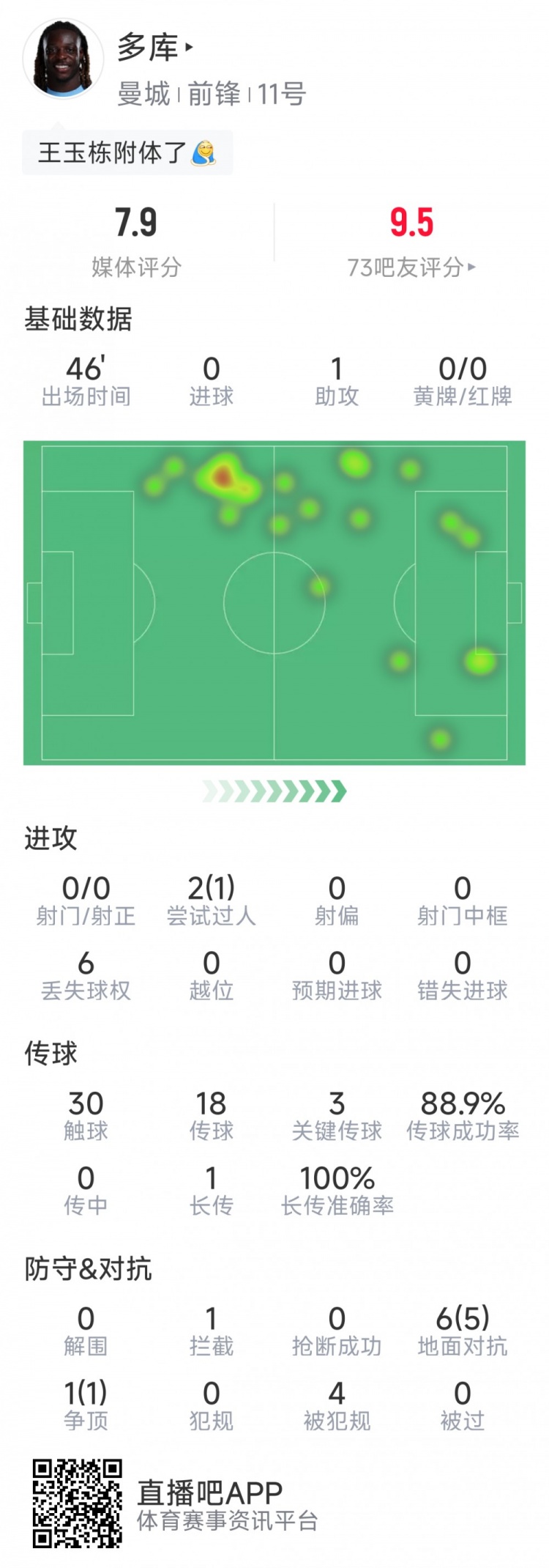 9月15日讯 本轮英超曼市德比半场战罢,曼城暂时1-0领跑 ,免费欧洲杯直播以下为多库半场数据: