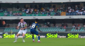 在本场赛事 第43分钟,尤文球员若昂-马里奥在危险区域 内手球运动 ,主裁判 拉普阿诺第一时间没有吹罚,但VAR随即介入,主裁判 拉普阿诺到场边观看视频回放后,改判十二码球,维罗纳依靠这个十二码球将比分扳平。