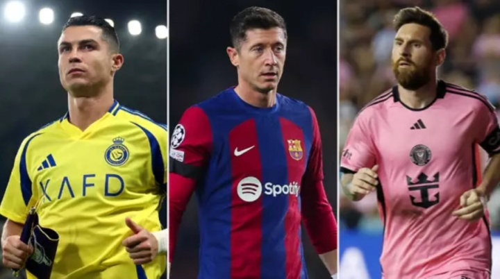 目前在现役球员射手榜上,C罗946球第一,免费欧洲杯直播梅西884球第二,莱万700球排在第三。