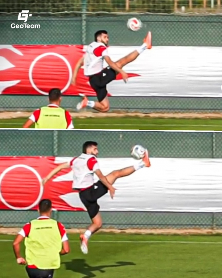 10月10日讯 格鲁吉亚国家队昨日晒出了一段克瓦拉茨赫利亚练习 时停球的照片。